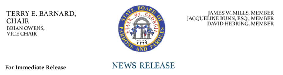 For more information please contact Steve Hayes, Director of Communications for the State Board of Pardons and Paroles at 404-657-9450 or [email protected] or visit our website at www.pap.georgia.gov.